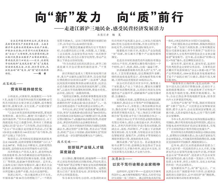 【人民日报】 向“新”发力 向“质”前行 ——走进江浙沪三地民企,感受民营经济发展活力