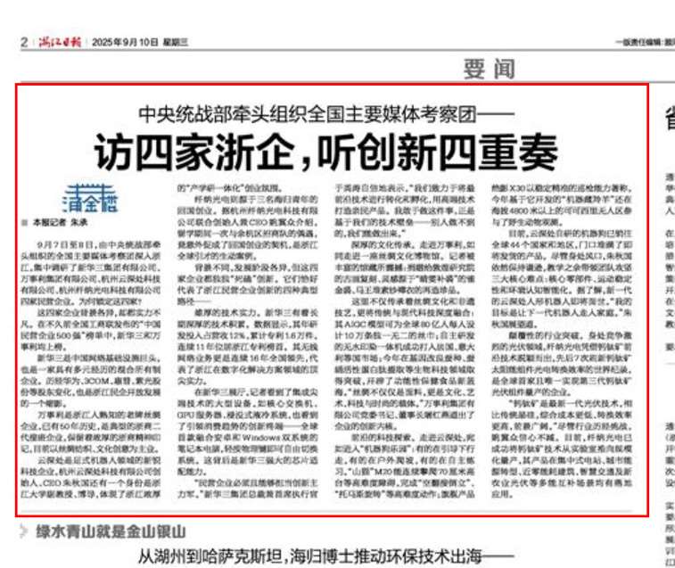 【浙江日报】 中央统战部牵头组织全国主要媒体考察团——访四家浙企,听创新四重奏